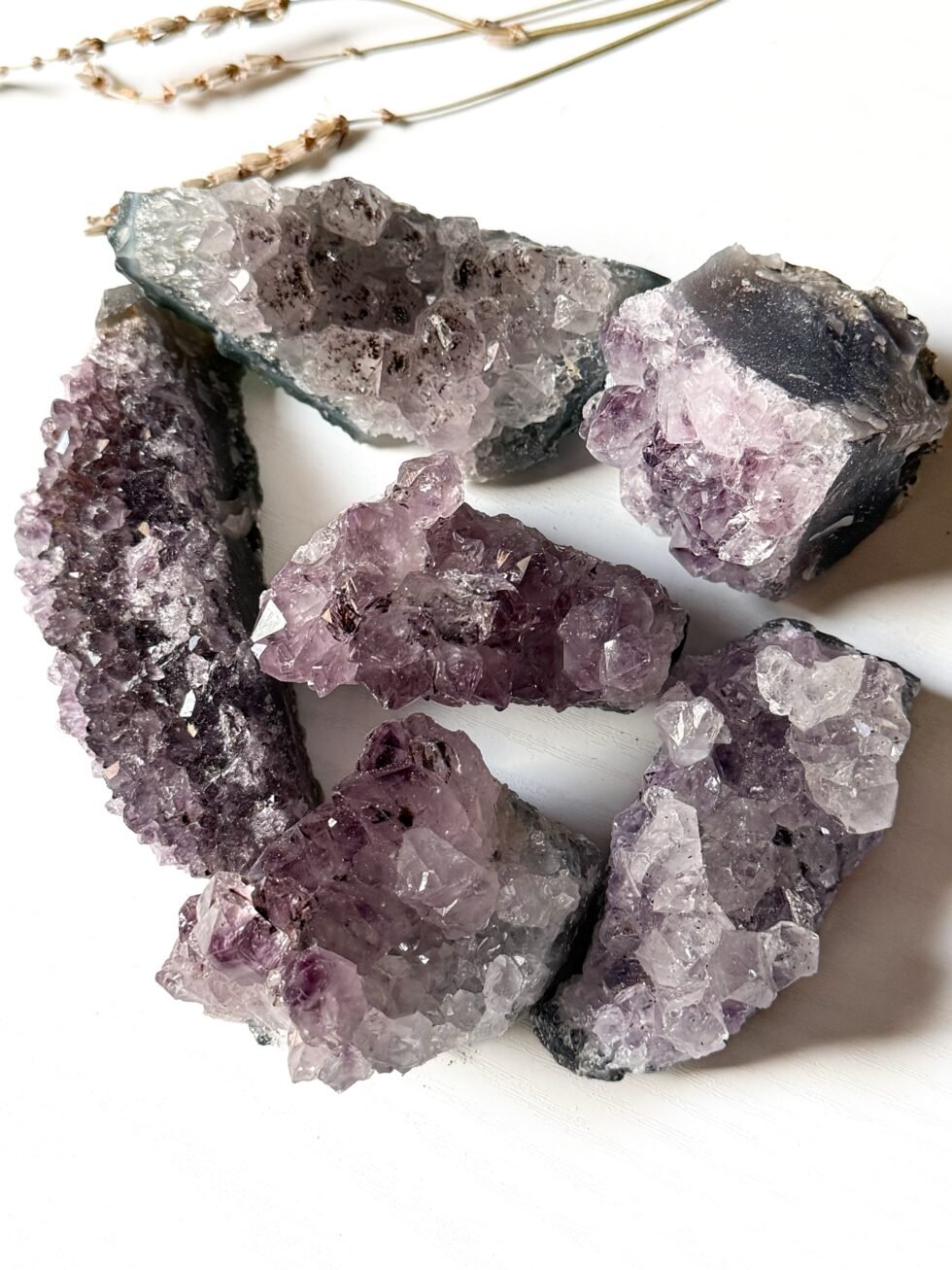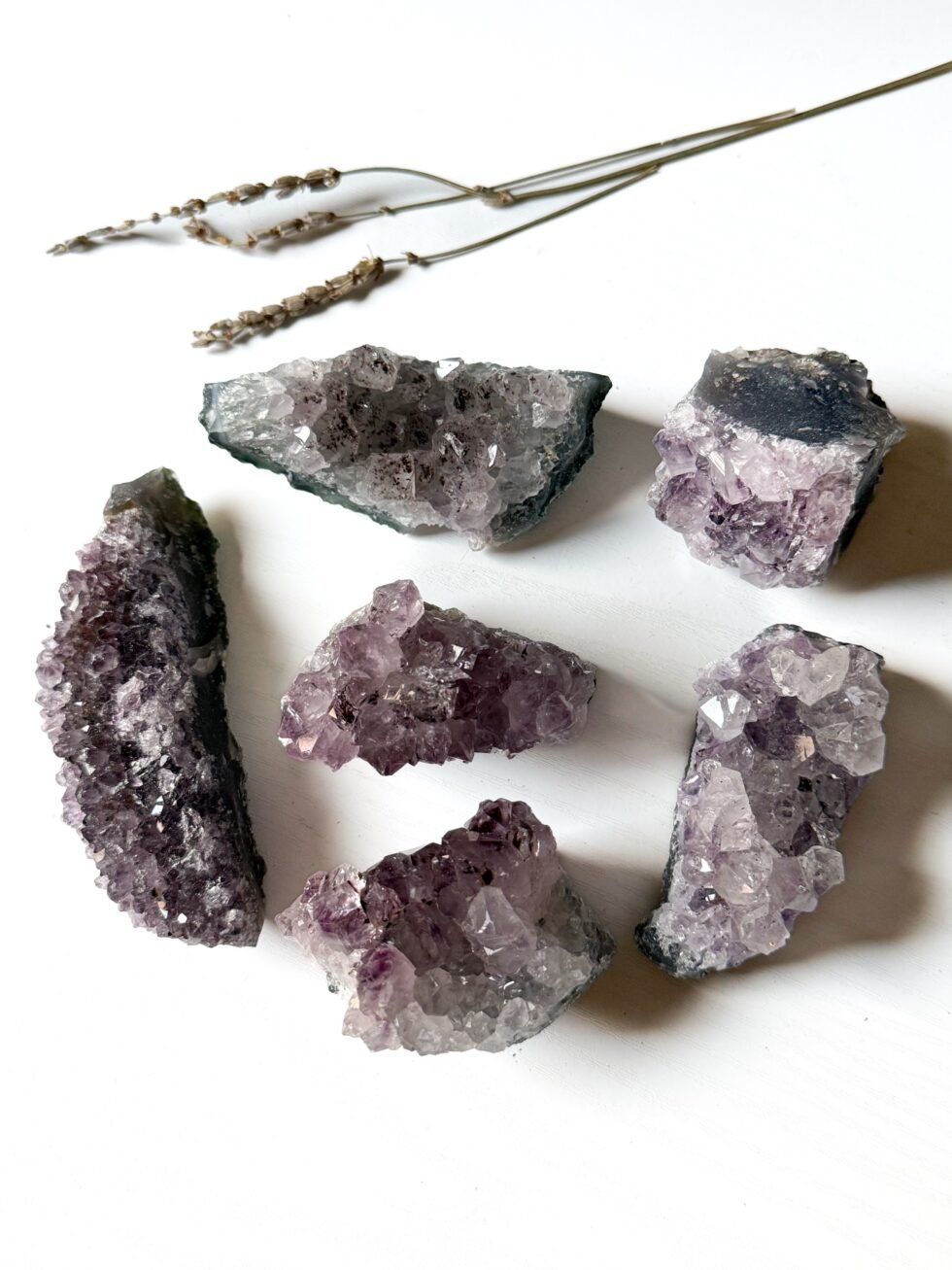 A soothing amethyst cluster intuitively chosen for you. Each piece brings calming energy, gentle emotional release, and natural beauty to your space
