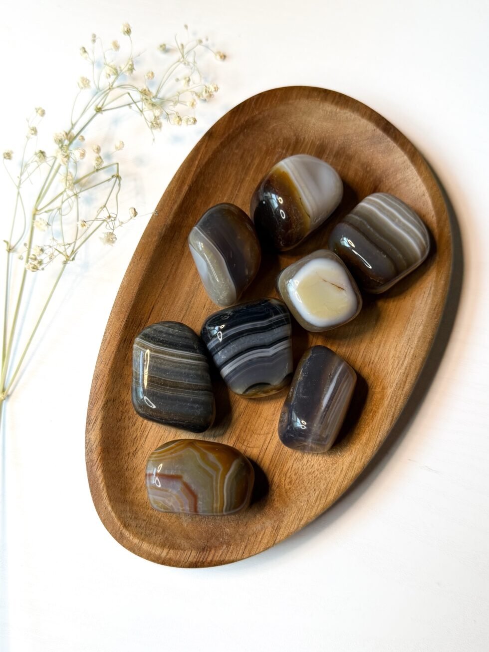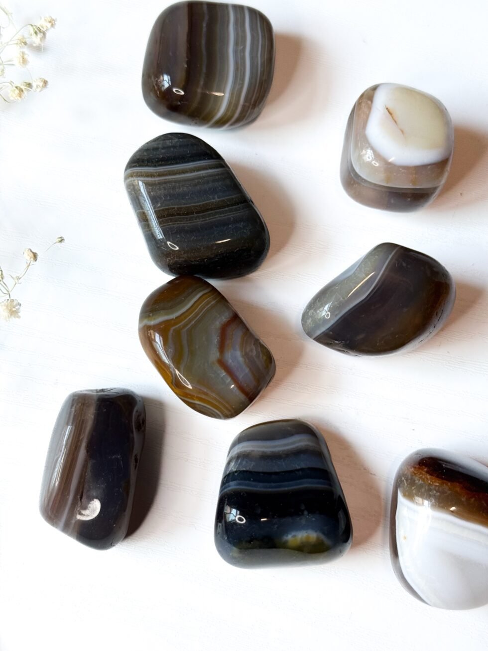 One intuitively picked banded agate tumblestone for emotional balance and stability.