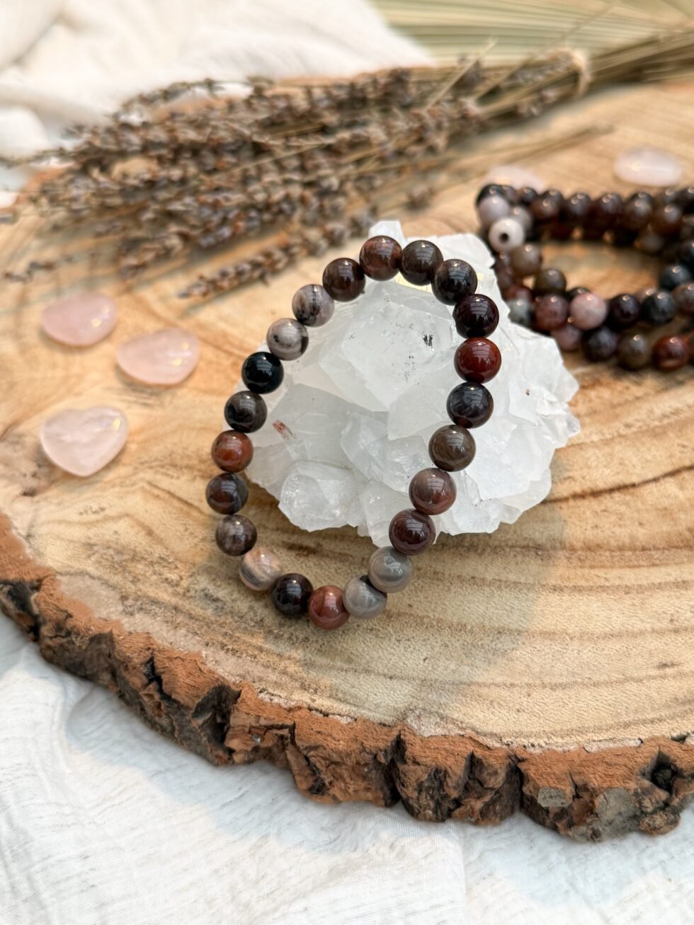 8mm Petrified Wood beaded bracelet, intuitively picked to promote grounding, resilience, and natural balance.