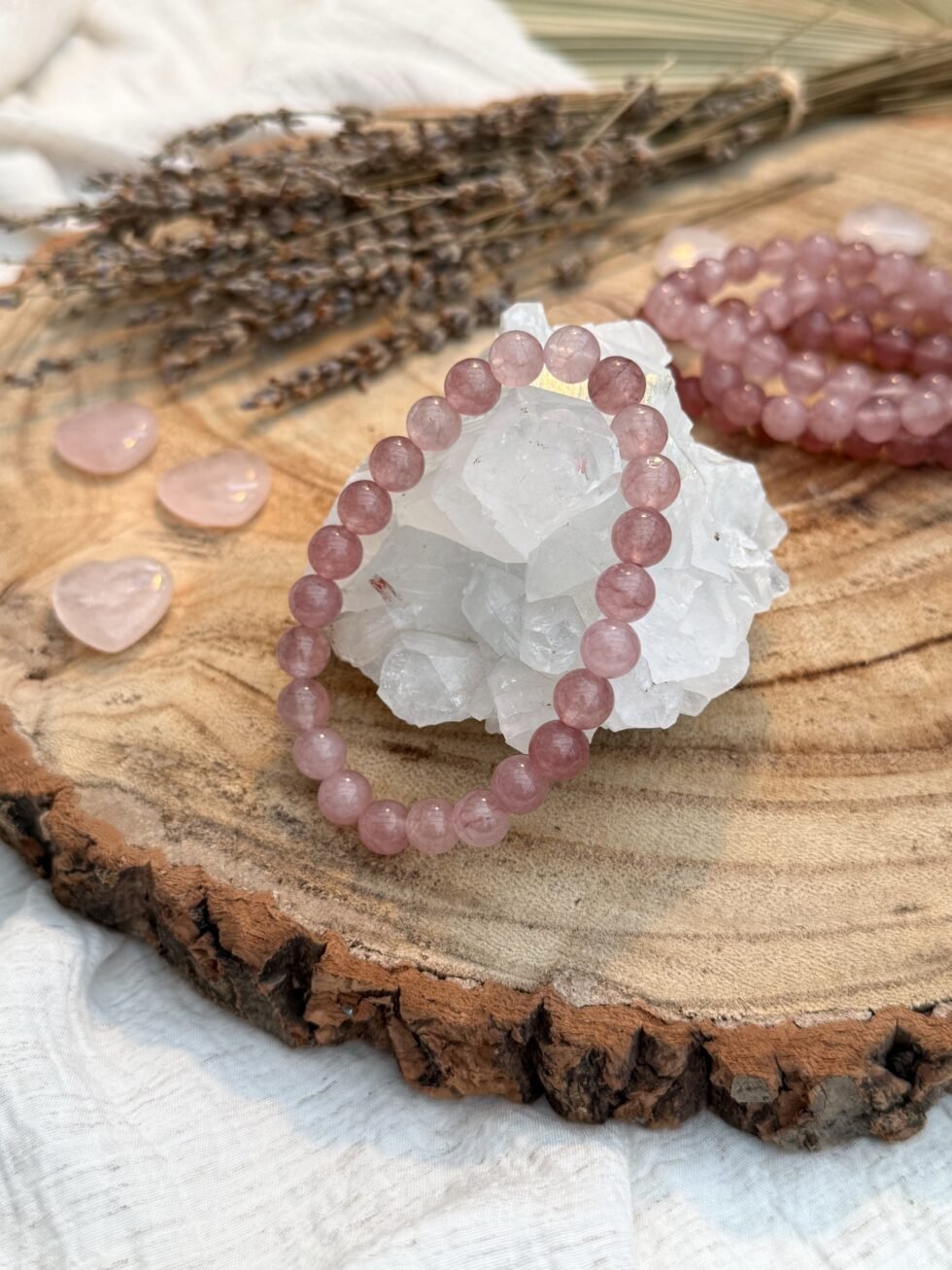 8mm Strawberry Quartz beaded bracelet, intuitively picked to promote love, compassion, and emotional balance.