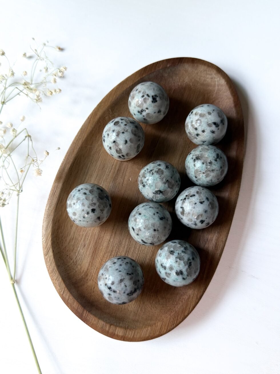 Kiwi Jasper is a unique stone that blends the tranquil energies of Amazonite, Tourmaline, and Quartz into one soothing creation of nature. Its soft blend of mint green, white, and grey tones evokes peace and balance, making it a wonderful companion for emotional healing and inner harmony. This beautiful sphere radiates gentle, heart-centred energy that restores a sense of wholeness and calm in both mind and spirit.