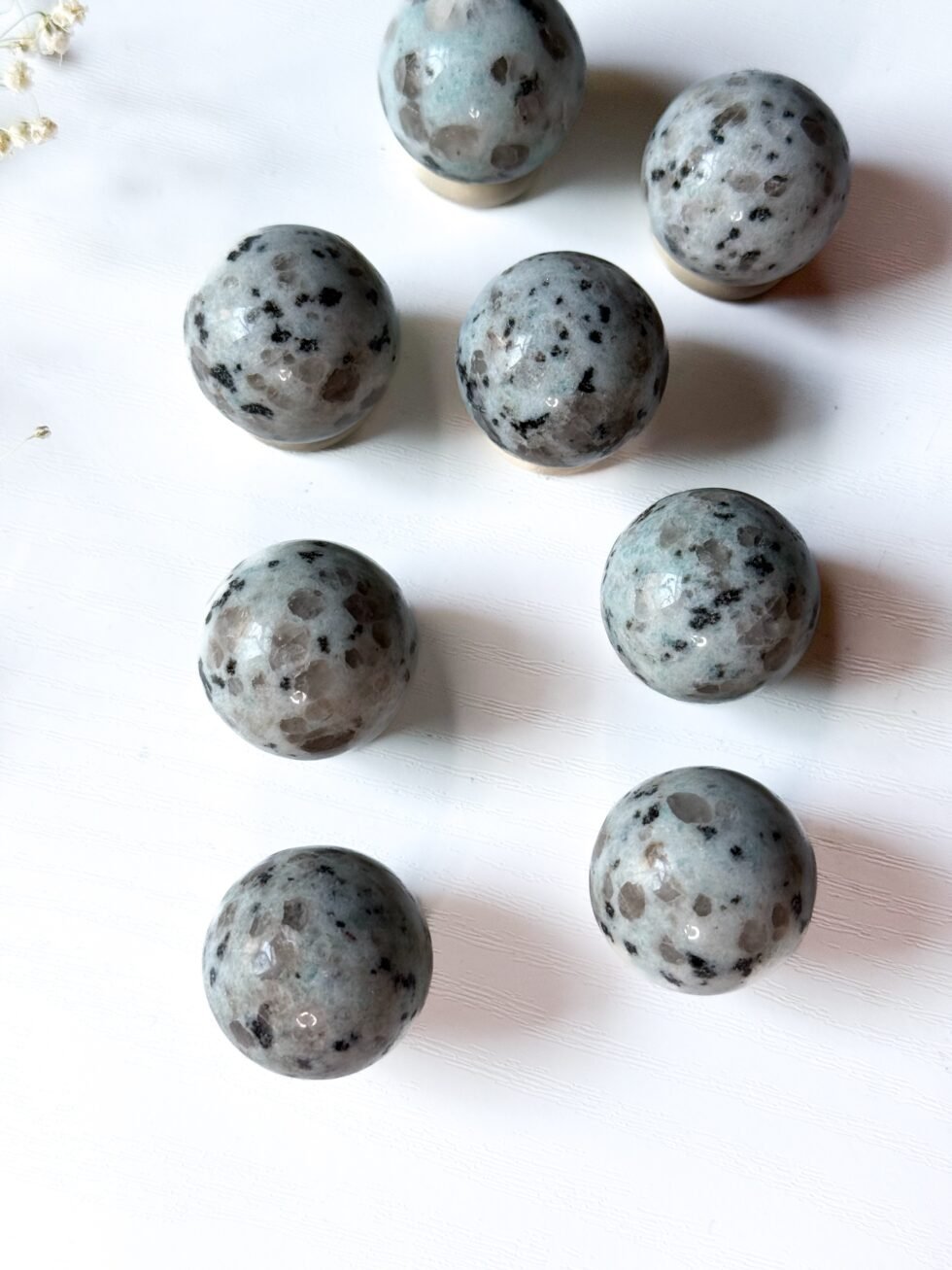 Kiwi Jasper sphere that balances heart and mind with nurturing, tranquil energy.