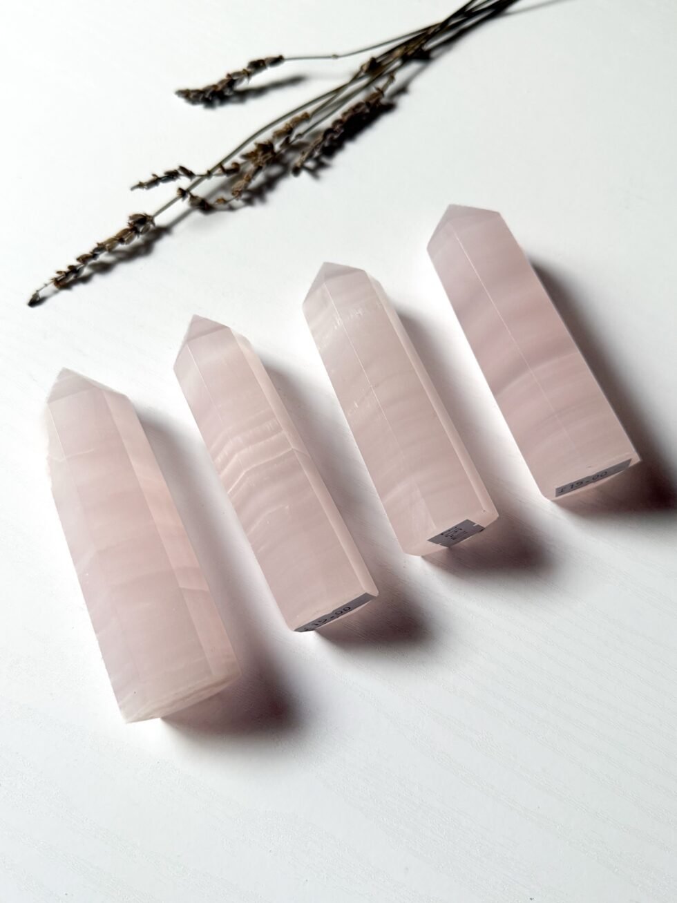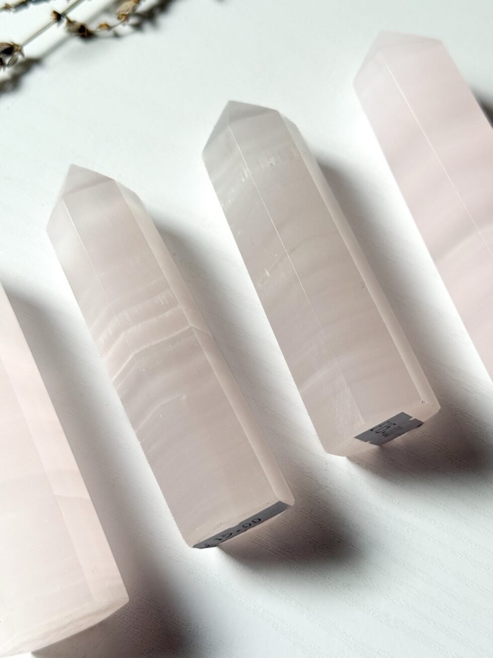 One intuitively picked soothing Mangano calcite tower for emotional healing.