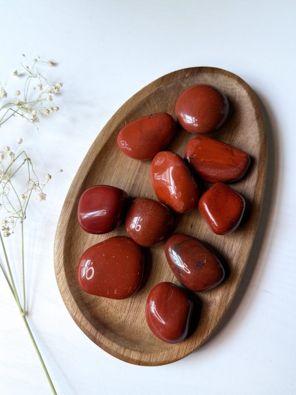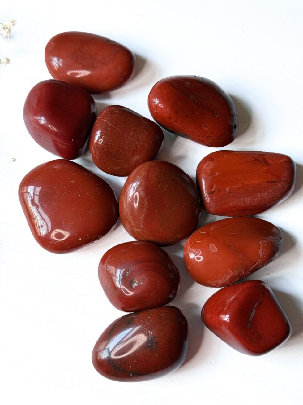 One intuitively picked red jasper tumblestone for stability, courage, and emotional strength.