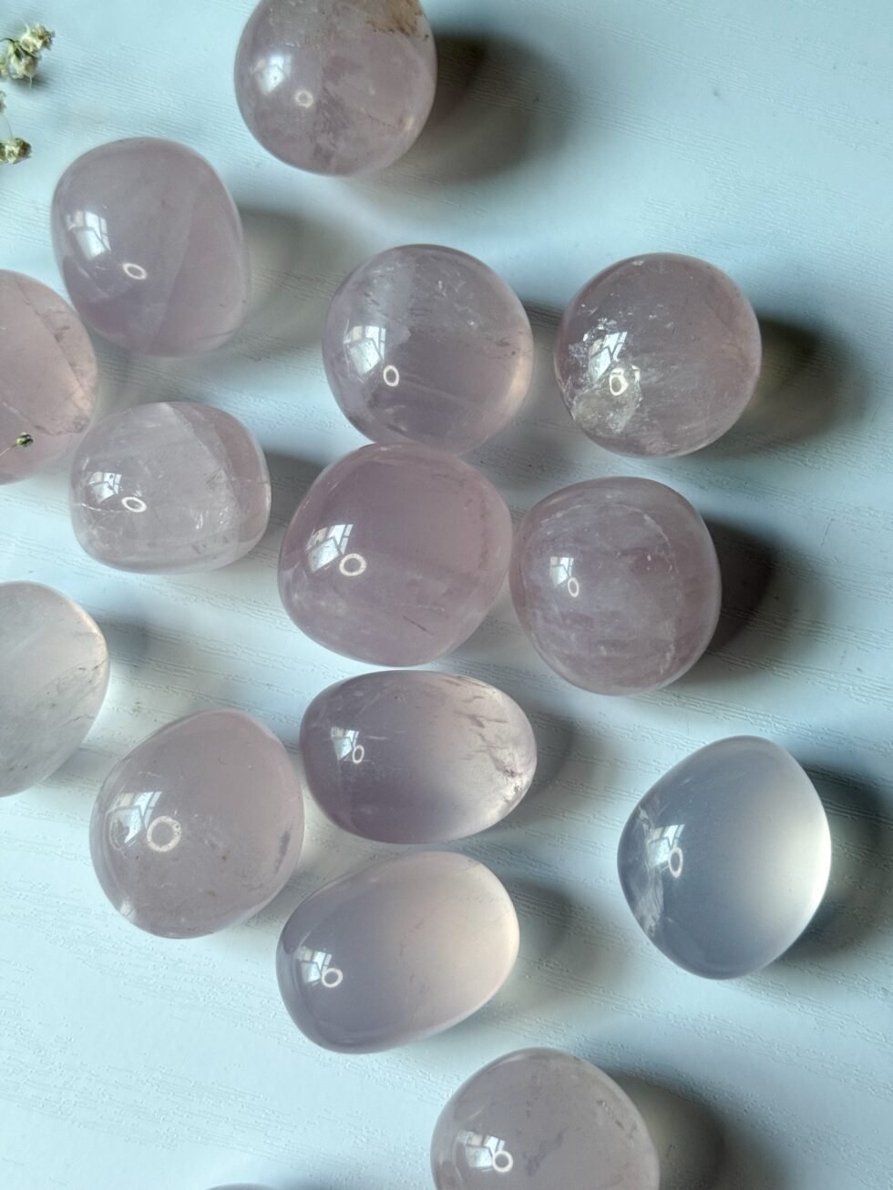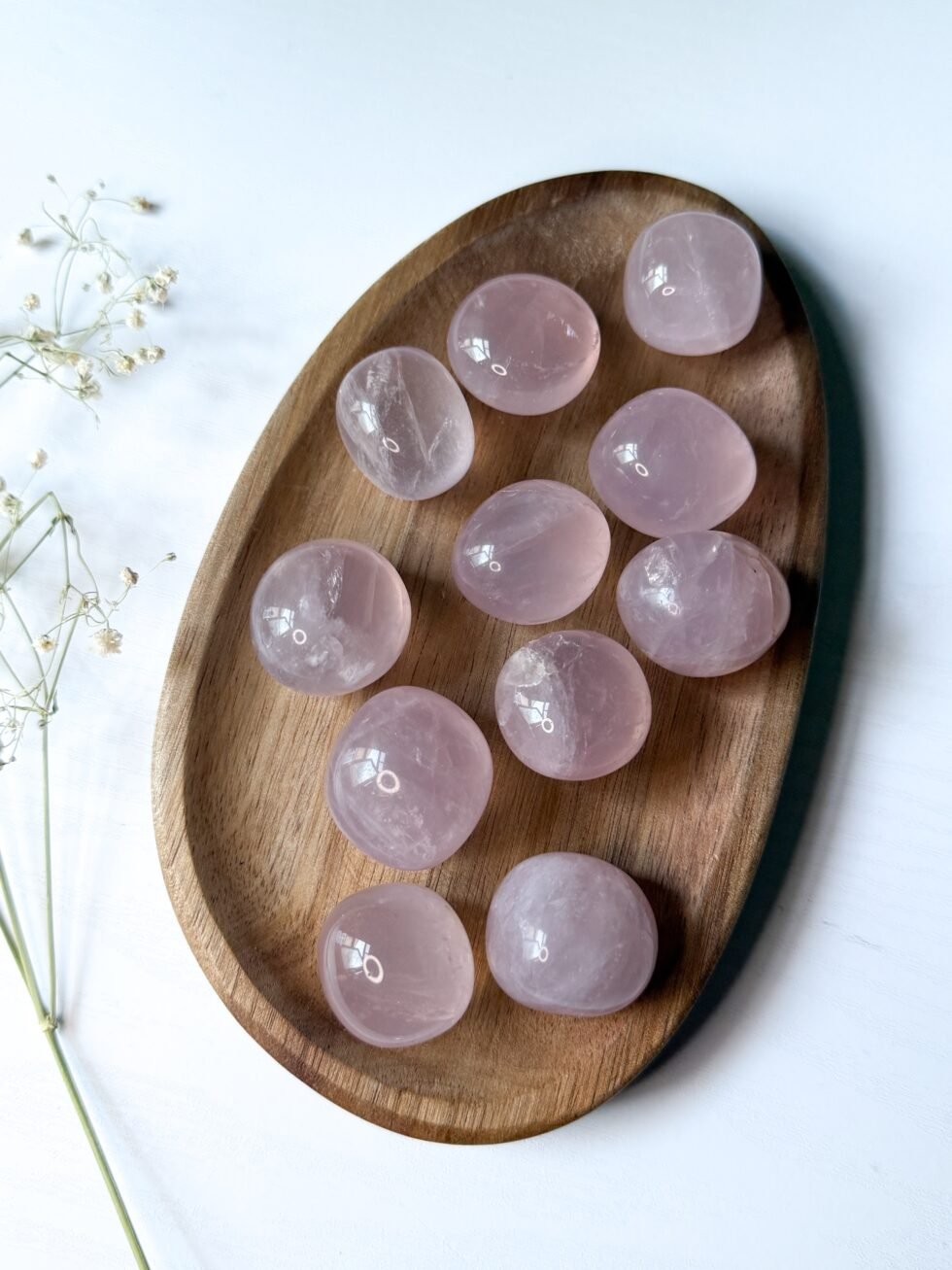 One intuitively picked rose quartz tumblestone, perfect for love, emotional healing, and balancing the heart chakra.