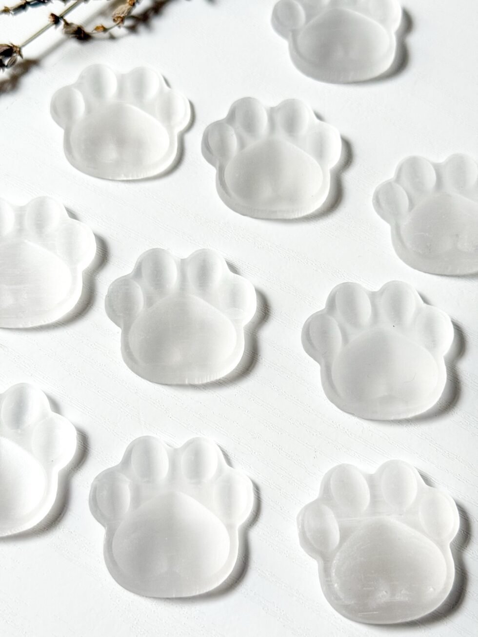 Selenite paw carving filled with soft, cleansing energy. Snowy Paws brings purity, protection, and calm into your space  a perfect piece for pet lovers, energy cleansing, or adding serene wintery magic to your home